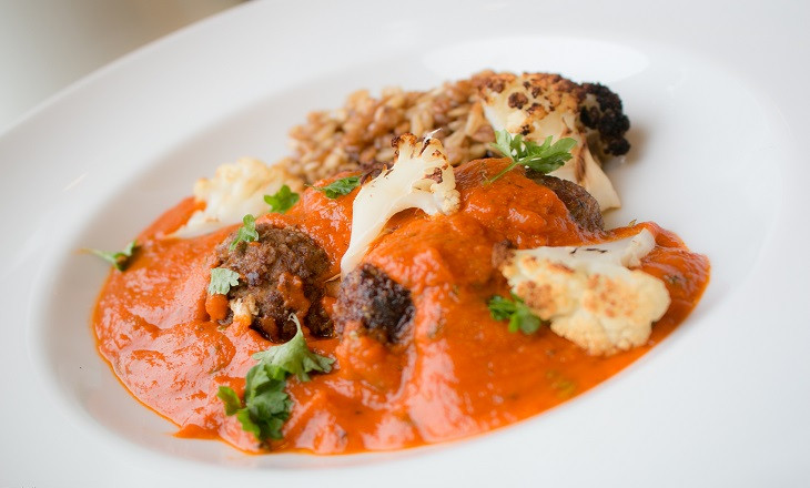 Smakrika köttbullar av lammfärs blir en god middag tillsammans med rostad blomkål och hemgjord tomatsås.